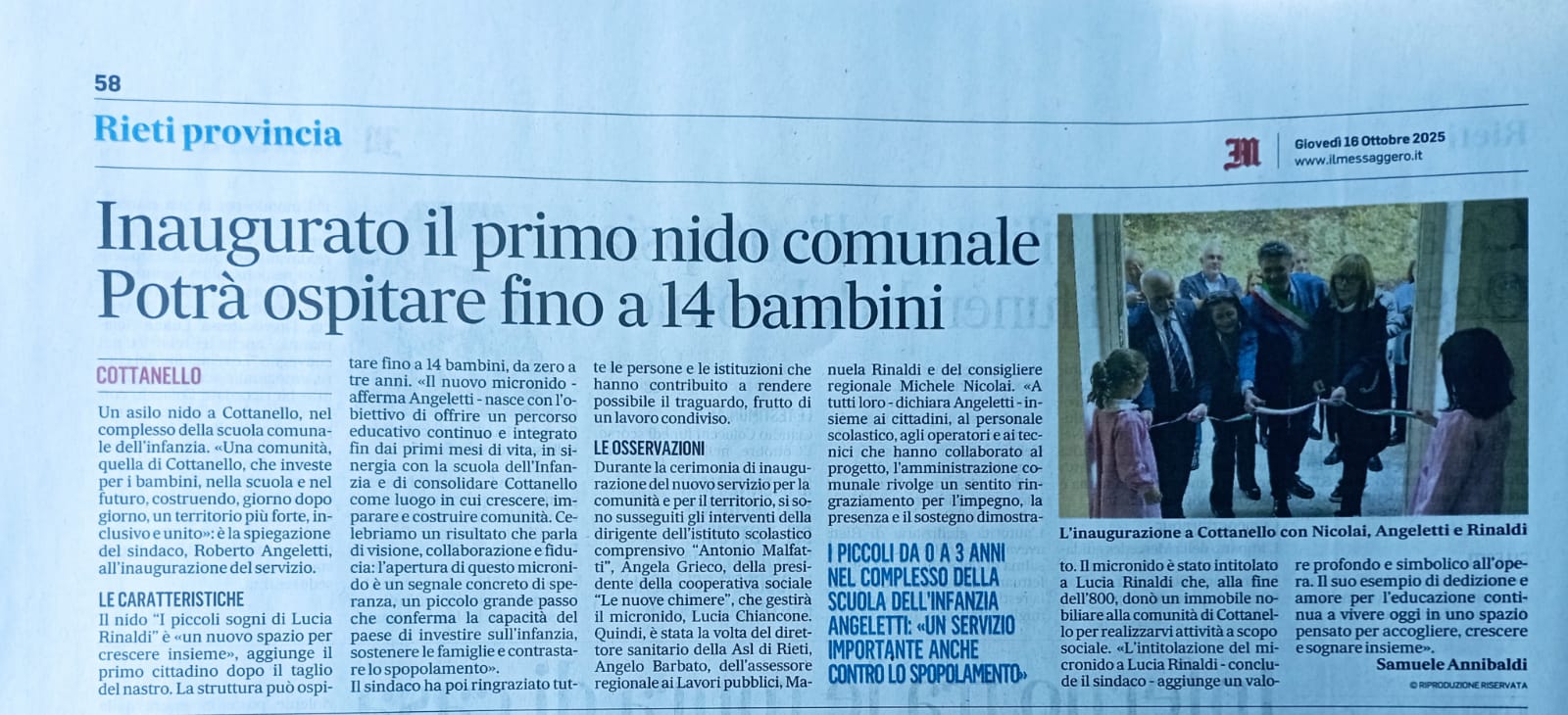 Il 14 ottobre 2025 è avvenuta l'inaugurazione del micronido di Cottanello, in allegato il comunicato ufficiale e le foto dell'evento.